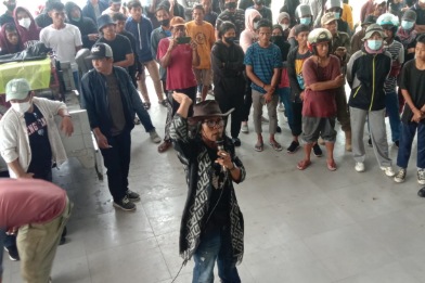 Penolakan Proyek Arteri Tahap ke-II Warga Tambi dan Kampung Baru Mamuju Orasi di Kantor Bupati