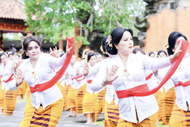 Pementasan tari sakral yang melibatkan 2500 orang penari tersebut, dipimpin langsung oleh Ketua TP PKK Badung Nyonya Seniasih Giri Prasta bersama Ketua DWP Badung Nyonya Rasniathi Adi Arnawa.