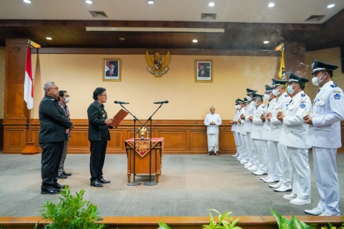 Bupati Badung Nyoman Giri Prasta mengambil sumpah jabatan dan melantik Perbekel Masa Tugas 2022-2028 di Ruang Kertha Gosana Puspem Badung.