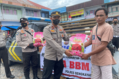 FAKTA – Polsek Sungai Raya dan jajaran memberikan bantuan kepada masyarakat terdampak kenaikan BBM.
