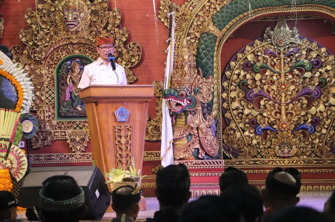 Sebagai bentuk komitmen dan dukungan Pemkab Badung, Wabup Suiasa menyerahkan bantuan dana secara simbolis sebesar Rp 10 juta dan bantuan pribadi sebesar Rp 3 juta yang diterima Ketua ST. Satya Muni I Kadek Agus Wirayuda.