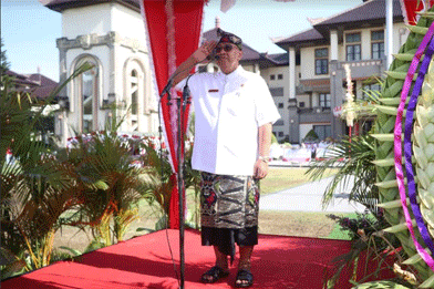 Gubernur Bali dalam sambutannya yang disampaikan Ketua DPRD Badung Putu Parwata mengucapkan selamat Hari Ulang Tahun Ke-13 Ibukota Kabupaten Badung “Mangupura”. Dumogi jajaran Pemerintah Kabupaten Badung lan Krama Badung sareng sami kapaica kenak sadya rahayu (Semoga jajaran Pemerintah Kabupaten Badung dan Krama Badung semua diberikan kesehatan dan keselamatan).