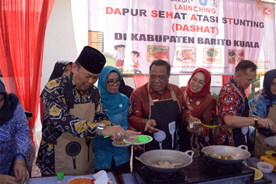 Selain pelaksanaan KB MKJP dan pelayanan pemeriksaan, Pemerintah Kabupaten Barito Kuala me-Launching DASHAT (Dapur Sehat Atasi Stunting) untuk pemberdayaan kelompok masyarakat di kampung KB dalam rangka percepatan penurunan stunting.