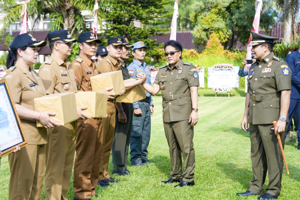 Bertindak selaku Inspektur Upacara Penjabat (Pj) Gubernur Bali Sang Made Mahendra Jaya, turut hadir jajaran Forkopimda Provinsi Bali dan Kabupaten Badung, anggota DPRD Badung, Sekda Wayan Adi Arnawa bersama jajaran kepala OPD Pemkab Badung serta Perbekel/Lurah se-Badung.