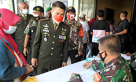 Dandim 0510/Trs Letkol Inf Bangun I.E Siregar dikesempatan itu melakukan pemantauan langsung serbuan vaksinasi didampingi Mayor Arh I Wayan Kariana Kasdim 0510/ Trs dan Dr. Lettu CKM Lani RS. Daan Mogot serta para pasi Jajaran Kodim 0510/ Trs dan para Danramil Jajaran Kodim 0510/ Trs.