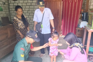 Sebagai perhatian khusus yang dilakukan Babinsa sebagai turut sertanya memberikan perhatian lewat terjun langsung ke rumah Suminah (26) selaku orangtuanya untuk pengecekan adanya perkembangan dalam pertumbuhan anak-anak, jelas Serka Er Hadi.