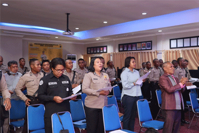 Giat Binrohtal diikuti oleh seluruh personel Polresta Jayapura Kota dan Polsek jajaran serta para Siswa Latja SPN Polda Papua yang beragama Nasrani.