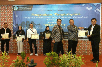 FAKTA – Pemkab Brebes menyerahkan sertifikat penghargaan kepada 30 perusahaan dan badan usaha, yang berpartisipasi aktif dalam program pembangunan di Kabupaten Brebes.