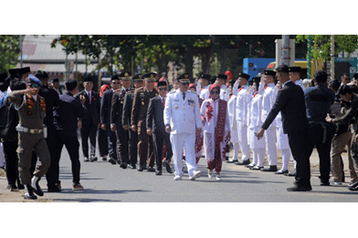 Upacara pagi itu diakhiri dengan penyerahan Tali Asih kepada Legiun Veteran/Janda Veteran oleh Pj. Bupati Barito Kuala dan dilanjutkan upacara ziarah nasional di Taman Makam Pahlawan 5 Desember Marabahan oleh Pj. Bupati dan rombongan Forkopimda. (F-913)