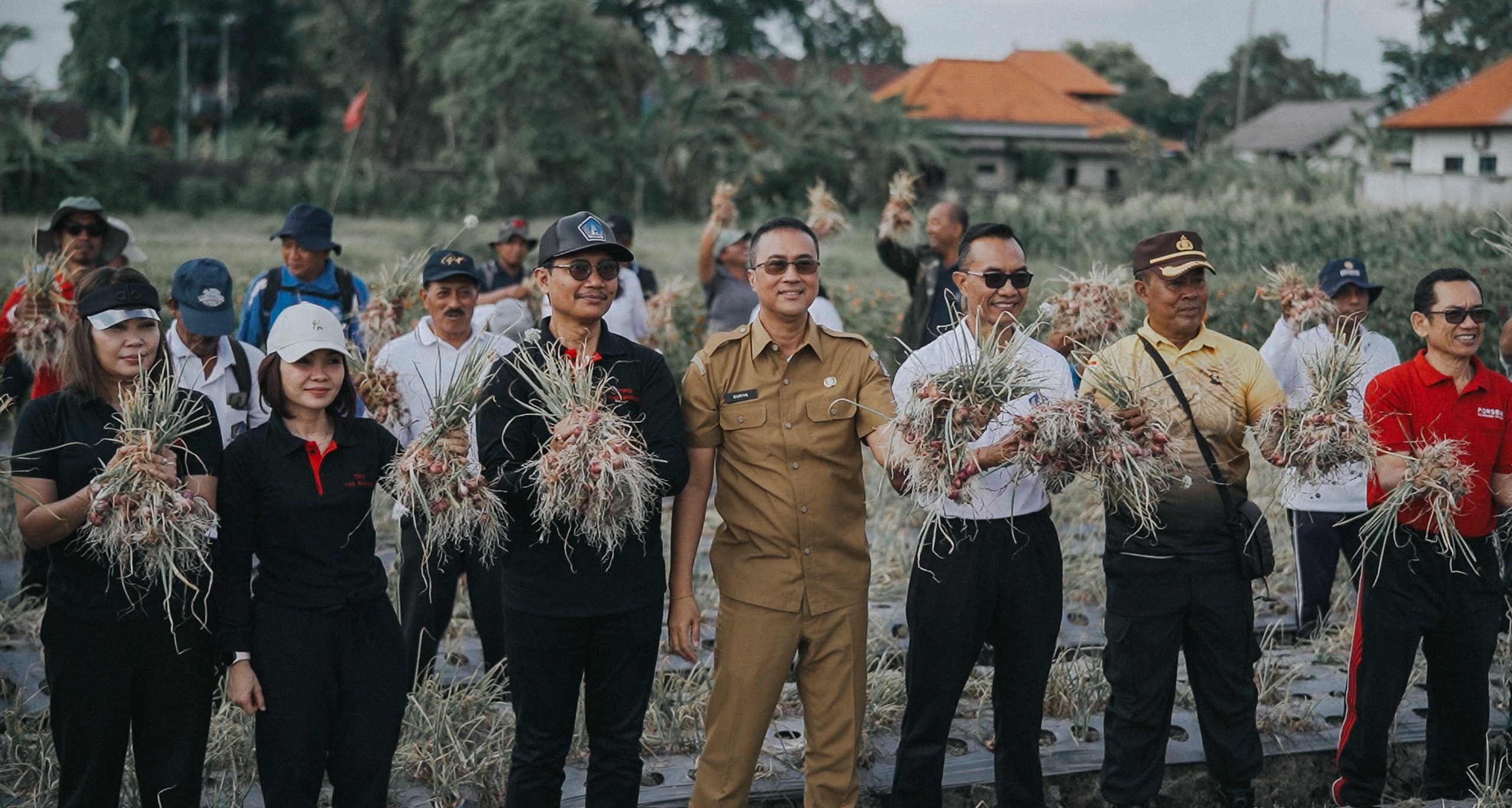 FAKTA – Pj. Sekda Badung IB. Surya Suamba melaksanakan Panen Perdana Bawang Merah di Subak Delod Sema Kelurahan Sading, Kecamatan Mengwi, Senin (14/10). Kegiatan ini merupakan bagian dari Gerakan Tanam Bawang Merah.