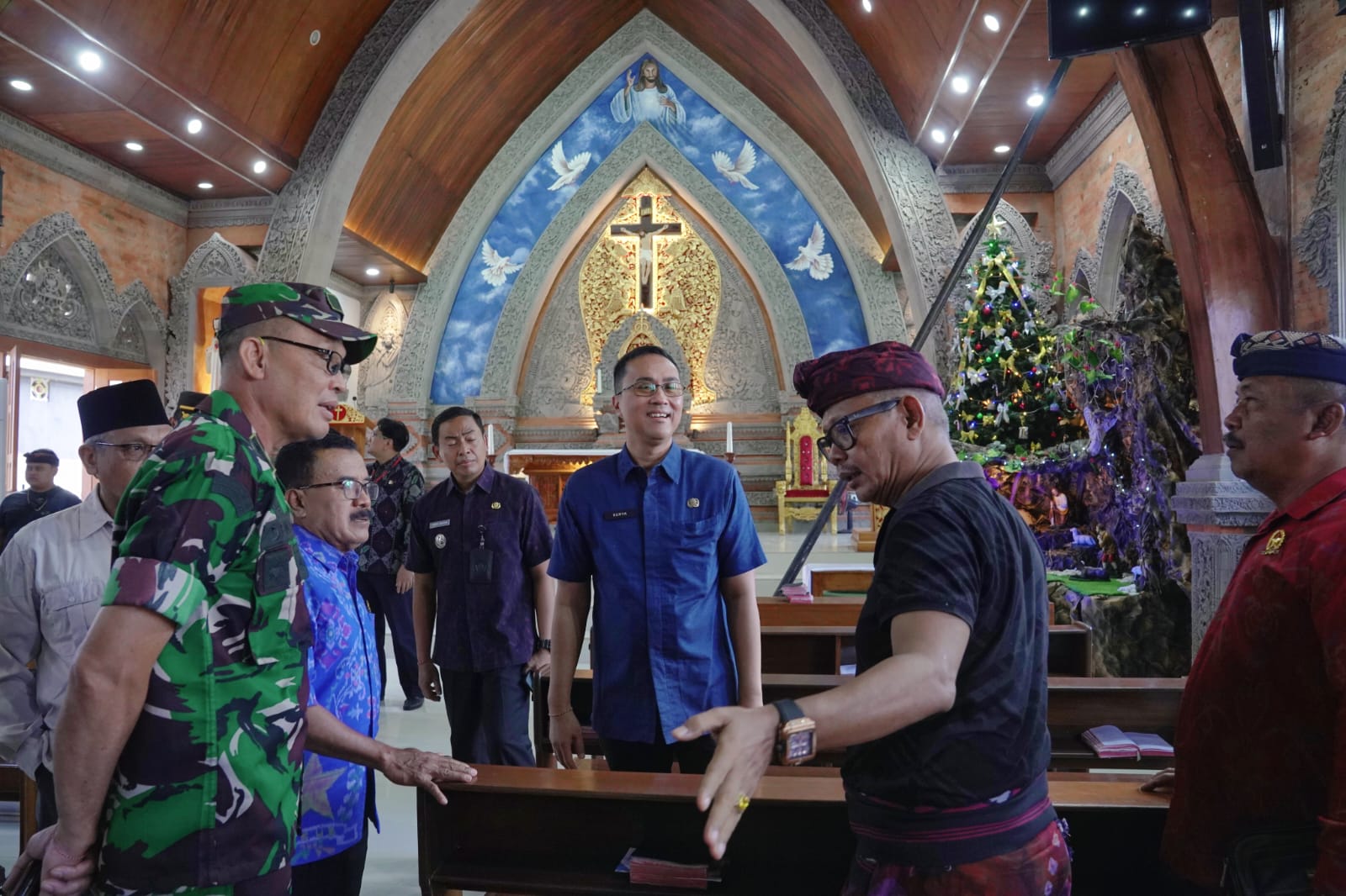 FAKTA – Pj. Sekretaris Daerah (Sekda) Badung Ida Bagus Surya Suamba melakukan kunjungan untuk memantau pelaksanaan malam Natal 2024 di berbagai lokasi ibadah di wilayah Kabupaten Badung, Selasa, (24/12/2024). Kunjungan ini bertujuan untuk memastikan bahwa perayaan Natal berjalan dengan lancar, aman, dan penuh kedamaian. turut mendampingi dalam kesempatan ini anggota DPRD Dapil Mengwi I Nyoman Edy Sanjaya dan Dapil Kuta I Nyoman Graha Wicaksana, Forkopimda Badung, Kaban Kesbangpolimas Badung I Nyoman Suendi, Kadisbud Badung I Gde Eka Sudarwitha, Kasat Pol. PP Badung IGAK Suryanegara, Kadis Kominfo Badung I Gst Ngr Gede Jaya Saputra, Kabag Hukum AA. Gede Asteya Yudhya, Perwakilan FKUB Badung, perwakilan Forpela dan Forgimala, Camat Mengwi I Nyoman Suhartana, Camat Kuta Utara I Putu Eka Permana, Camat Kuta D Ngurah Bayudhewa, Perbekel Desa Cemagi, Perbekel Desa Dalung, Lurah Legian.