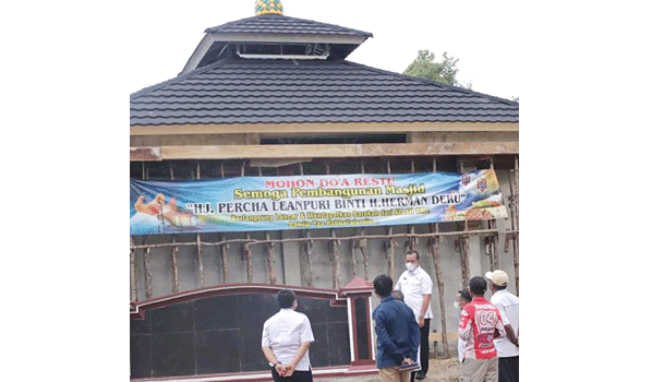 “Untuk pembangunan Masjid Hj. Percha Leanpuri Binti H. Herman Deru dalam tahap proses penyelesaian pembangunan yang masih berlanjut,”ujarnya.