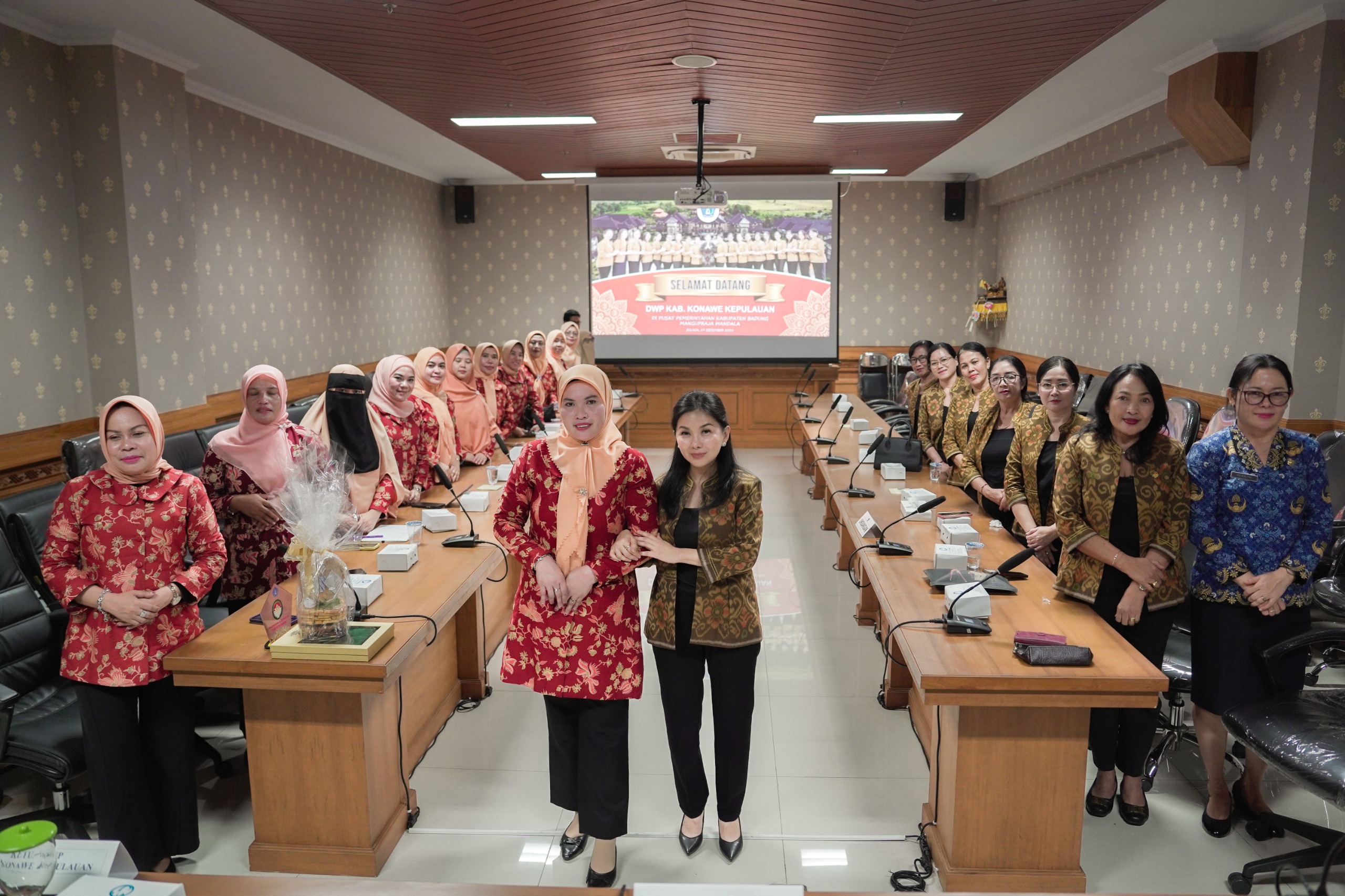 FAKTA – Dalam rangka menjalin kerja sama dan berbagi pengalaman mengenai program dan kegiatan yang dilaksanakan oleh Dharma Wanita Persatuan (DWP) di tingkat kabupaten, DWP Kabupaten Konawe Kepulauan, Provinsi Sulawesi Utara melakukan kunjungan ke DWP Kabupaten Badung. Rombongan yang dipimpin Ketua DWP Kabupaten Konawe Kepulauan, Israwati Cecep diterima langsung Plt. Ketua DWP Kabupaten Badung Oliviana Surya Suamba bersama di Balai Budaya Giri Nata Mandala, Puspem Badung, Selasa (17/12/2024).