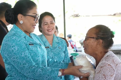 Dalam kesempatan kali ini di setiap lokasi kunjungan, Ketua TP PKK Bali menyerahkan bantuan kepada 50 warga kurang mampu, yang terdiri dari lansia, ibu hamil, penyandang disabilitas, kader PKK dan balita.