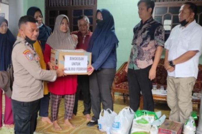FAKTA – Personel Subdit Renakta Ditreskrimum Polda Lampung beserta Polsek Tanjung Karang Barat dan Bhabinkamtibmas, silaturahmi menyampaikan turut berduka cita serta memberikan tali asih ke rumah keluarga korban almarhum Rio Febrian (17), di Langkapura Bandar Lampung, korban penganiayaan yang dilakukan pelaku secara bersama-sama di Lapas Anak Masgar, Tegineneng Kabupaten Pesawaran, Sabtu (17/7/2022).