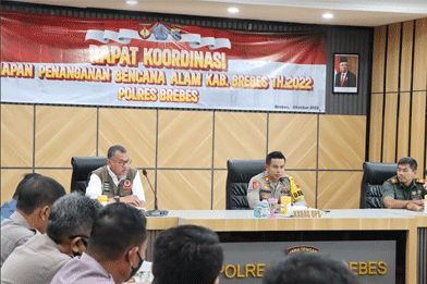 FAKTA – Polres Brebes Polda Jateng menggelar rapat koordinasi dalam rangka kesiapsiagaan menghadapi bencana pada Rabu (19/10/2022), bertempat di aula Tantya Sudhirajati Polres Brebes.