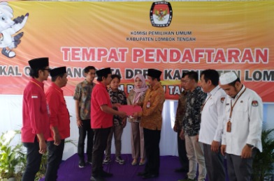 Setibanya di Kantor KPU Kabupaten Lombok Tengah, Ketua dan Sekretaris DPC PDI Perjuangan Kabupaten Lombok Tengah melakukan registrasi dan dari perwakilan dipersilahkan masuk ke halaman Kantor KPU.