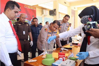 Selanjutnya dilakukan pemusnahan barang bukti Narkotika menggunakan alat blender yang dipimpin oleh Kapolres Loteng dan disaksikan oleh seluruh peserta dan awak media yang hadir.(hid)