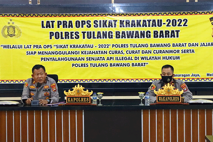Majalahfakta.id – Jajaran Polres Tulang Bawang Barat, Polda Lampung menggelar Latihan Pra Operasi Sikat Krakatau 2022 di Aula Mapolres setempat. Selasa (24/5/22) pukul 09.00 Wib