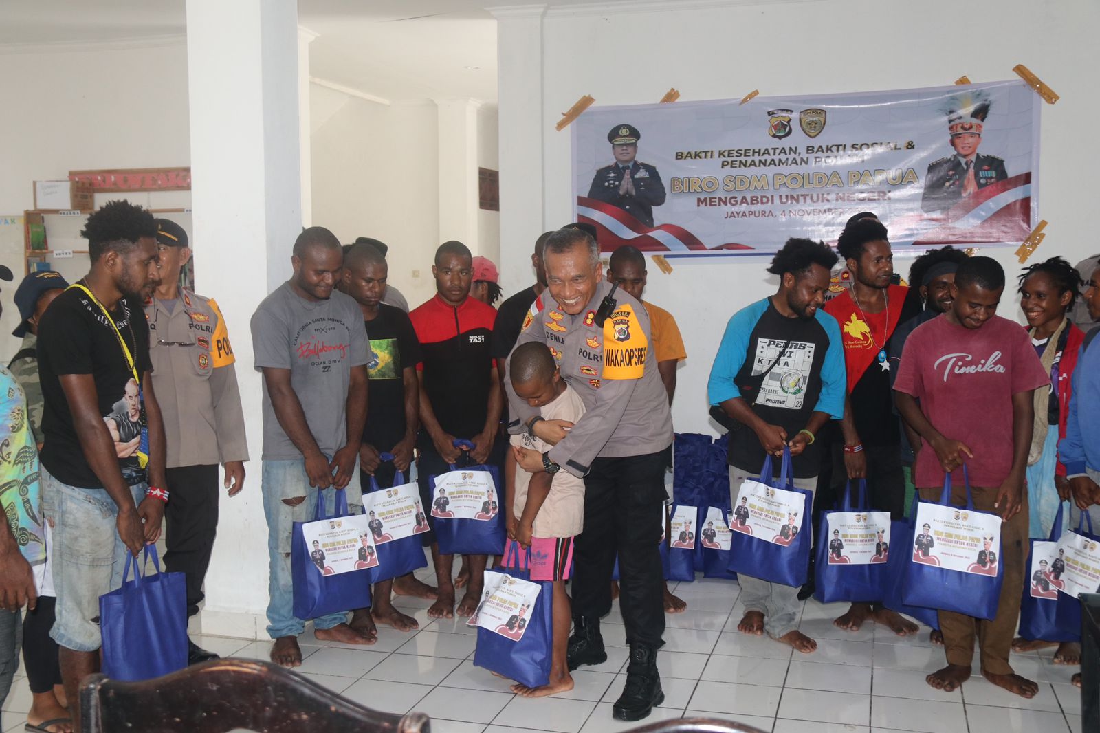 FAKTA, JAYAPURA – Bakti sosial kepada para pelajar mahasiswa di Asrama Nayak 2, Distrik Abepura, digelar Polresta Jayapura Kota, Sabtu (4/11/2023) pagi. Kegiatan yang digelar dalam rangka Rakorbin SDM Polri T.A. 2023 Polresta Jayapura Kota ini dipimpin oleh Wakapolresta AKBP Deni Herdiana, S.E., S.H., M.M., M.H.