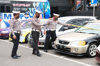 “Dengan gerak cepat anggota Satlantas bersama POM TNI, langsung bergerak mendatangi lokasi. Ternyata memang benar, sudah banyak kendaraan roda dua maupun roda empat berkumpul dan terindikasi melakukan balapan liar, sehingga langsung dilakukan penindakan,” jelas AKP Yoppy Anggi Khrisna, Senin, (04/10/2021).