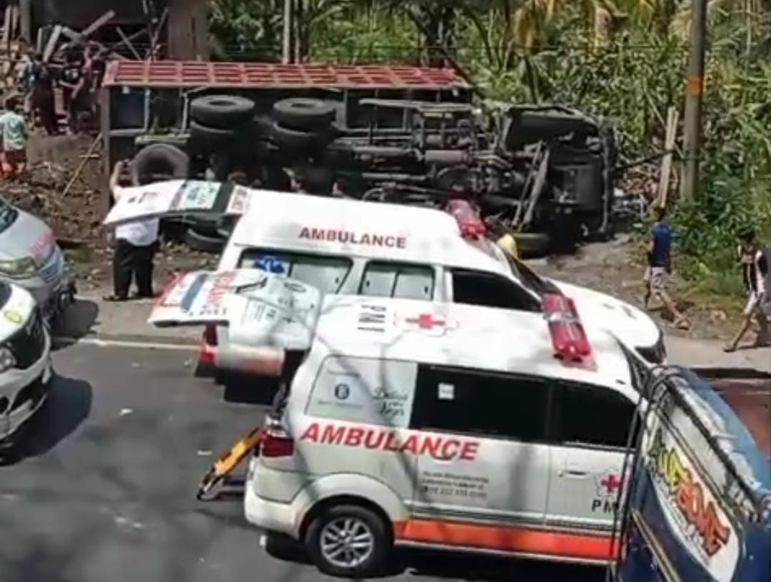 Rombongan minibus kopada membawa rombongan guru dan warga dari Mendut Magelang alami kecelakaan dihantam dump truk bermuatan pasir yang mengalami oleng akibat rem blong.