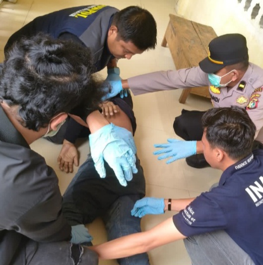 Kejadian tersebut warga langsung melaporkan ke pihak kepolisian, gabungan piket fungsi Polresta Mamuju bersama Inafis Polda Sulbar setelah menerima laporan warga langsung bergerak cepat menuju TKP untuk melakukan pemeriksaan terhadap korban tersebut.