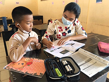 Oleh karena itu, untuk untuk melakukan penguatan literasi siswa, Celine memberikan tambahan pelajaran di luar materi sekolah.