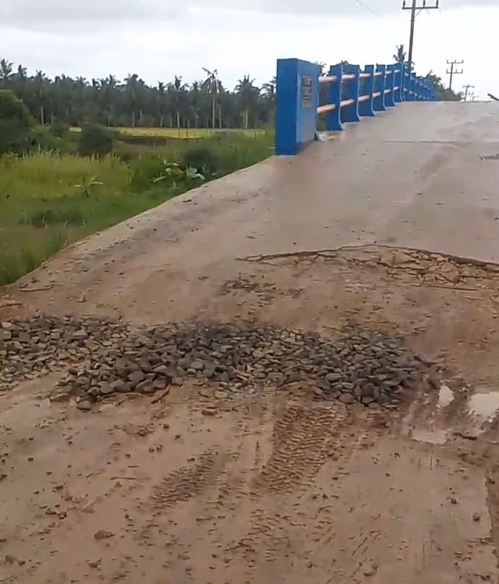 Hasil penelusuran di lapangan menunjukkan, ruas jalan dan jembatan yang diklaim baru dibangun pada 2024 itu telah mengalami kerusakan signifikan.