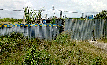 Saat memasuki gerbang, pintunya sudah roboh dan tidak dipasangi garis polisi itu. Terlihat ada plang bertulisan ‘Kawasan & Bangunan Ini Dalam Proses Penyidikan Tipikor Kejaksaan Tinggi Sumatera Selatan’. Selain itu, ada beberapa tiang pondasi berdiri di sana.