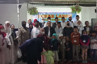 FAKTA – Paguyuban Pedagang Kreatif Lapangan (PKL) Pasar Laron Kota Wisata Batu bagikan Santunan kepada Anak Yatim sekitar Alun-Alun Kota Batu di Area Pasar Laron Jl. Sudiro Kota Batu, Rabu (27/07/2022) malam.