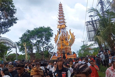 Menurutnya, sebelum layon dinaikkan keatas bade akan dilaksanakan, penghormatan terakhir oleh Pemuda Panca Marga. Kemudian layon disambut oleh Tari Baris Tekok Jago untuk menaikan ke Bade. Selanjutnya bade akan bergerak menuju setra setelah lewat pukul 12.00.