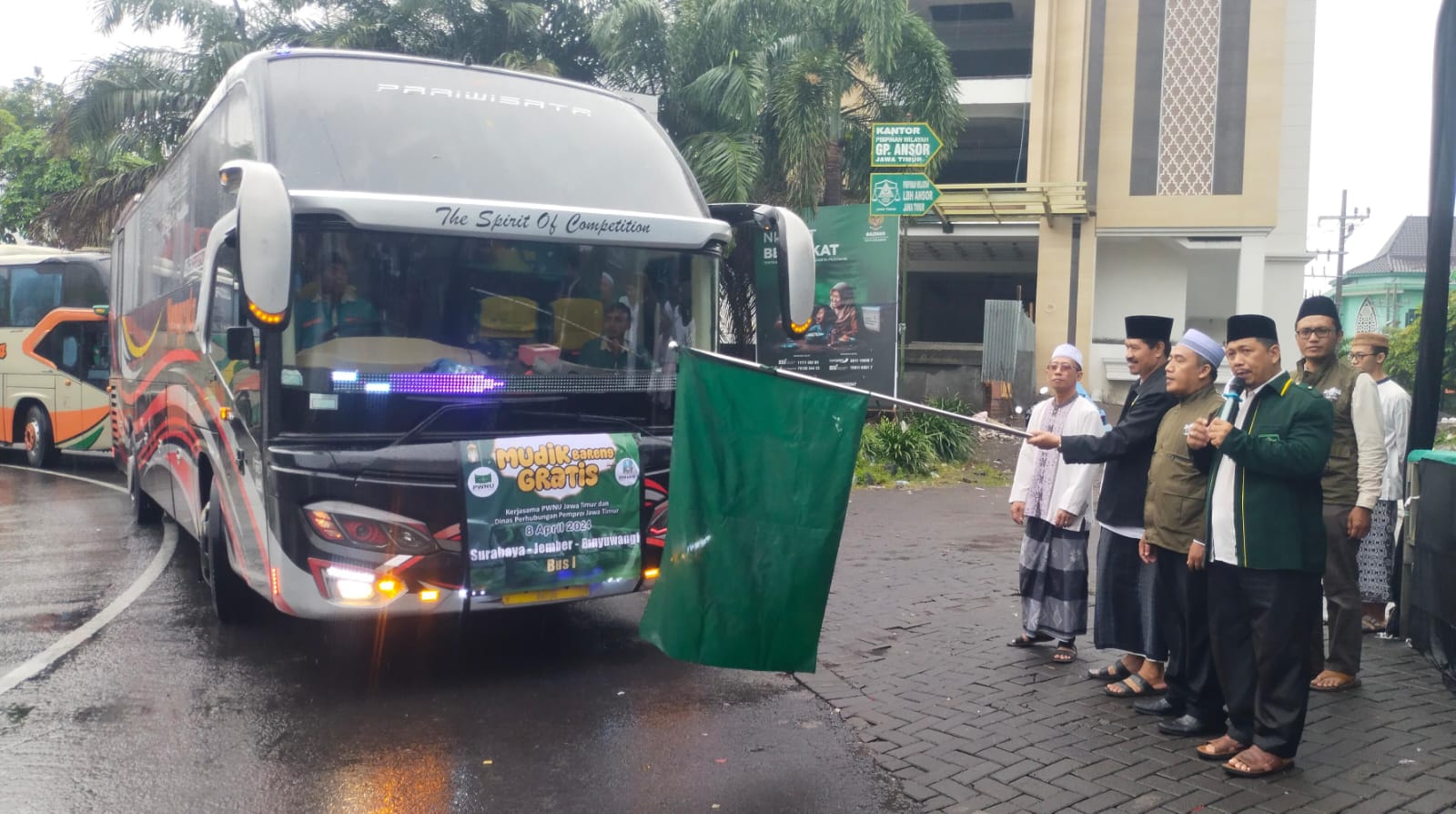 FAKTA – Pengurus Wilayah Nahdlatul Ulama (PWNU) Jawa Timur bekerja sama dengan Dinas Perhubungan Provinsi Jawa Timur menyelenggarakan program Mudik Bareng Gratis, Senin (8/4/2024), di depan Gedung PWNU Jatim. Program ini tidak hanya ditujukan untuk warga nahdliyin, tapi juga untuk masyarakat umum yang ingin mudik ke kampung halaman masing-masing dengan aman, tenang dan nyaman.