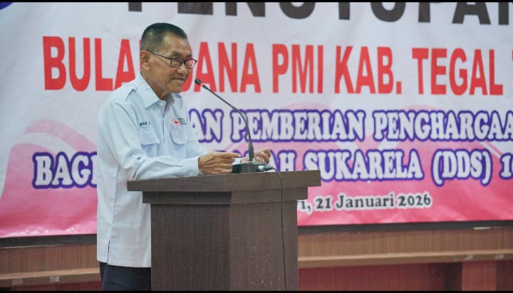 FAKTA – Pelaksanaan Bulan Dana Palang Merah Indonesia (PMI) Kabupaten Tegal Tahun 2025 mencapai Rp2,33 miliar atau sekitar 97 persen dari target Rp2,4 miliar. Capaian ini menempatkan PMI Kabupaten Tegal pada posisi ketiga terbaik se-Jawa Tengah. Hal tersebut disampaikan Asisten Perekonomian dan Pembangunan Sekretaris Daerah Kabupaten Tegal Joko Kurnianto saat penutupan Bulan Dana PMI Kabupaten Tegal Tahun 2025 dan pemberian penghargaan donor darah sukarela yang digelar di Aula PMI Kabupaten Tegal, Rabu (21/1/2026).