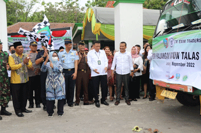 FAKTA – Ekspor kali pertama rajangan daun Talas dari Kecamatan Kabuh ke Australia, pemberangkatannya dilakukan Bupati Jombang Mundjidah Wahab, Rabu (02/11/2022).
