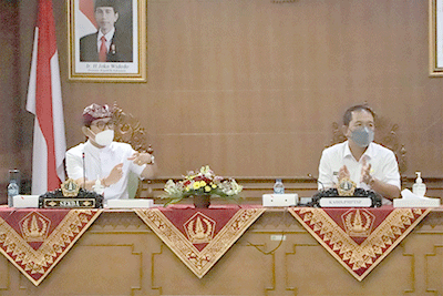 Sekda Adi Arnawa dalam sambutannya mengatakan melihat dari kebijakan pusat bahwa Presiden Jokowi sedang merancang kebijakan pasca pandemi ini, berdasarkan kondisi Indonesia dibandingkan beberapa negara secara regional, cukup terbelakang.