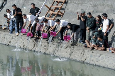 Pada kesempatan tersebut Sekda Adi Arnawa secara simbolis menebarkan ikan lele di Tukad Mati, dan dilanjutkan memberikan bantuan dana kegiatan Kesra tingkat Kabupaten sebesar Rp30 Juta yang diterima langsung Ketua Panitia Lomba Pancing sekaligus Ketua LPM Kelurahan Legian Nyoman Erwin Tri Adnyana dan disaksikan seluruh warga.