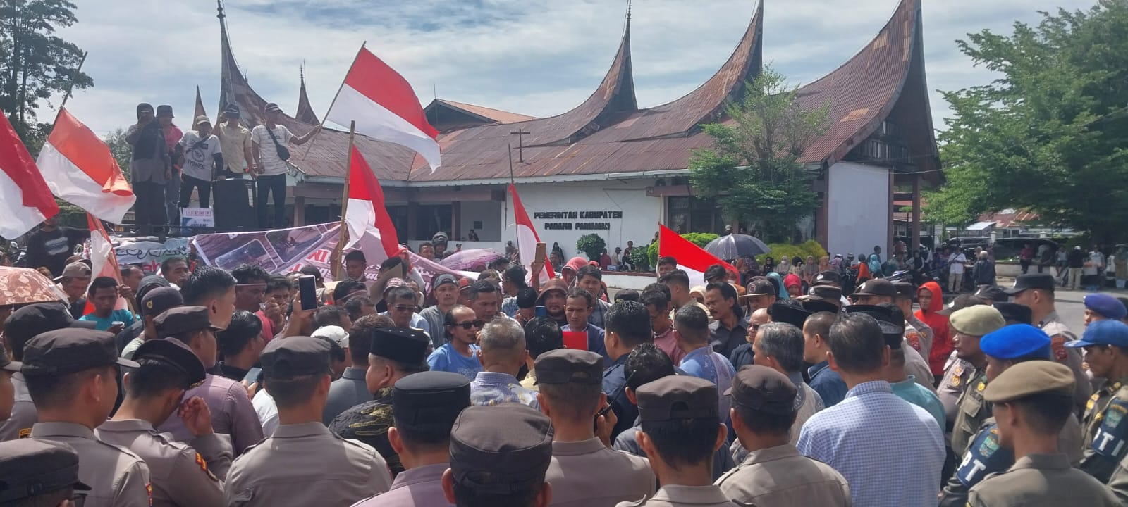 FAKTA – Ratusan massa dari Masyarakat Kapalo Hilalang, Kecamatan 2×11 Kayu Tanam, Kabupaten Padang Pariaman, Sumatera Barat, melakukan aksi damai ke pemerintah daerah, dan Dewan Perwakilan Rakyat Daerah (DPRD) Padang Pariaman, Kamis (11/9/2025). Aksi massa kali ini, merupakan aksi yang kedua dilakukan. Aksi dilakukan di halaman kantor bupati, kemudian dilanjutkan ke kantor DPRD di daerah itu.