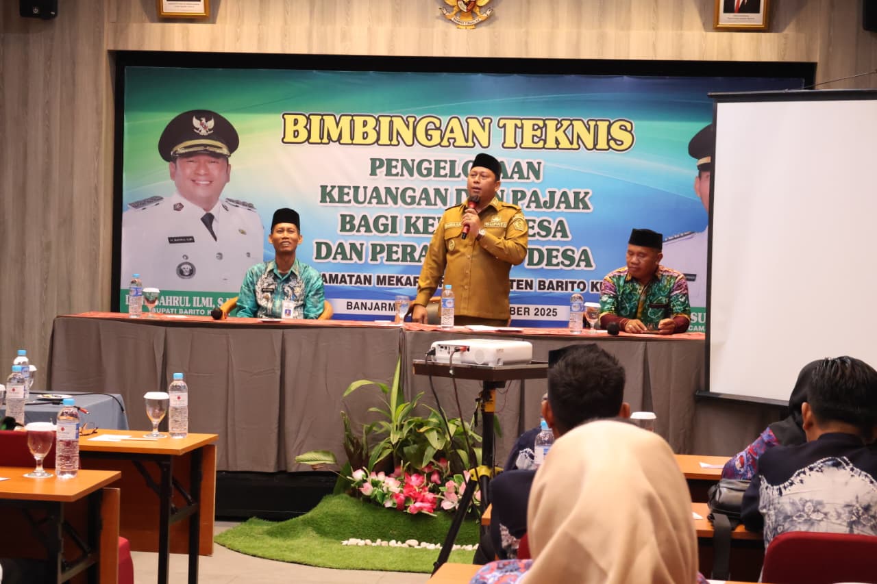 FAKTA – Kegiatan Bimbingan Teknis (Bimtek) Pengelolaan Keuangan dan Perpajakan bagi Kepala Desa, Sekretaris Desa, serta Kaur Keuangan se-Kecamatan Mekarsari resmi dibuka pada Selasa (21/10/2025) oleh Bupati Barito Kuala.