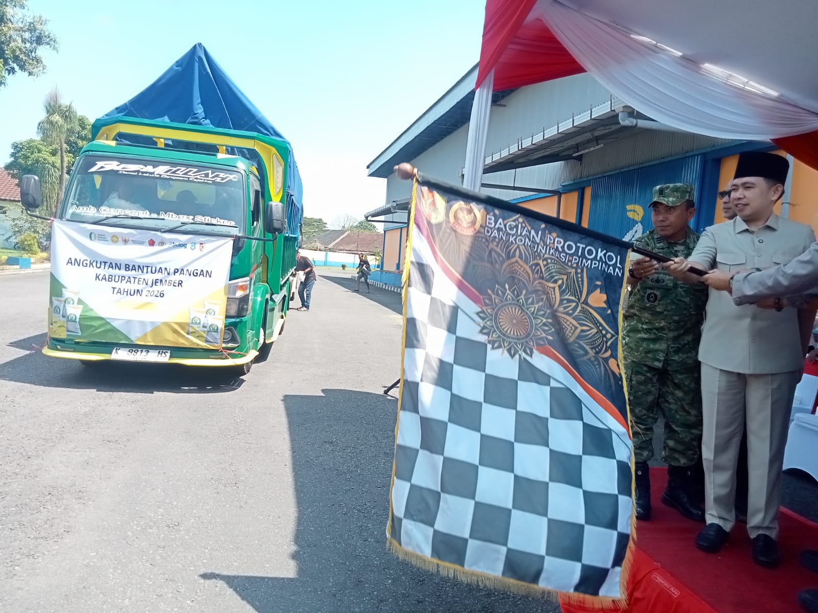 FAKTA – Pemerintah Kabupaten Jember bekerjasama dengan Bulog Cabang Jember kembali mendistribusikan ribuan ton beras. Bertempat di Kantor Bulog Cabang Jember, Mangli, Jumat (10/4/2026) siang, belasan truk berisi ribuan ton beras mulai didistribusikan.