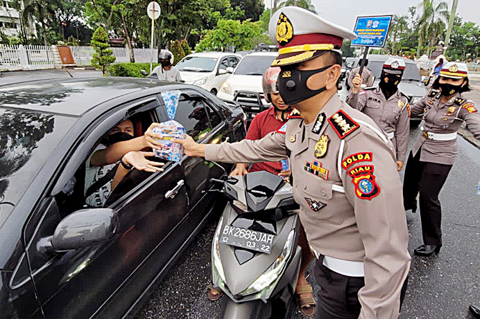 “Bukan hanya penindakan hukum saja, tapi ada kegiatan sosial, Polisi juga ingin dekat ke masyarakat. Ya dengan cara berbagi takjil salah satunya,” kata Kombes Firman didampingi Wadirlantas Polda Riau, AKBP Donni Eka Syaputra, Kompol Birgitta Atvina Wijayanti.