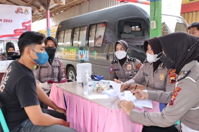 FAKTA – Sambut HUT ke-74 Polwan RI yang jatuh pada tanggal 1 September, jajaran Polwan Polres Brebes gelar bakti kesehatan dengan melaksanakan kegiatan pemeriksaan gratis dan pemberian obat-obatan yang dilaksanakan di terminal angkot Desa Tanjung, Kecamatan Tanjung, Kabupaten Brebes, Kamis (28/7/2022).