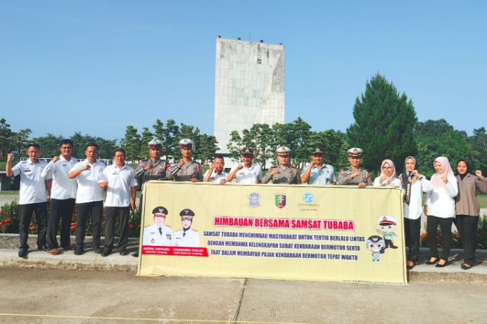 Kapolres Tulang Bawang Barat AKBP Sunhot P. Silalahi , S.I.K, .M.M, yang diwakili Kasat Lantas Polres Tubaba IPTU Suarjono Surya Ninggrat, S.H, M.H bersama KA UPTD Aris Munandar, S.H.M.H, memberikan himbauan kepada masyarakat untukberhati-hati saat berkendara dan tetap patuhi peraturan lalulintas serta mengajak masyarakat untuk taat bayar pajak kendaraan bermotor.