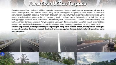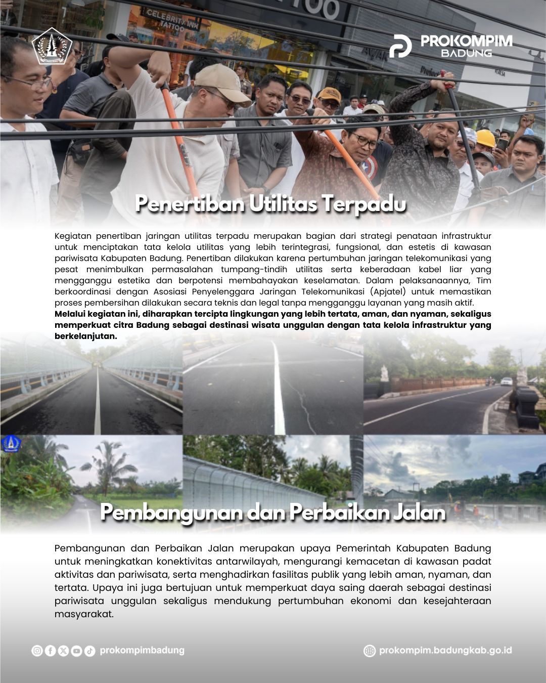 Dari rekayasa lalu lintas Kerobokan Kelod yang memangkas waktu tempuh secara signifikan, pembangunan empat trase jalan baru dan Jalan Lingkar Selatan, penataan kabel utilitas, hingga normalisasi sungai penanganan infrastruktur dikerjakan dengan pendekatan terukur.