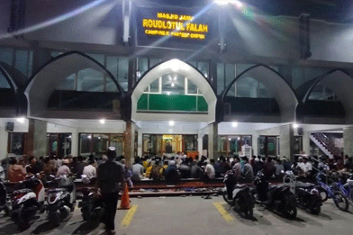 FAKTA – Masyarakat Desa Campurrejo Kecamatan Panceng, Kabupaten Gresik malam ini Sabtu 29 April 2023, merayakan Hari Raya Ketupat, yang di laksanakan bersama di Masjid Roudlotul Falah, dengan membaca Diba’ yang kemudian dilanjutkan dengan Sholawat Nabi Muhammad, yang dipimpin Ketua Takmir, H. Thoyul Hasanaini. Warga yang hadir sangat sangat antusias sekali diperkirakan tidak kurang dari 500 jamaah.