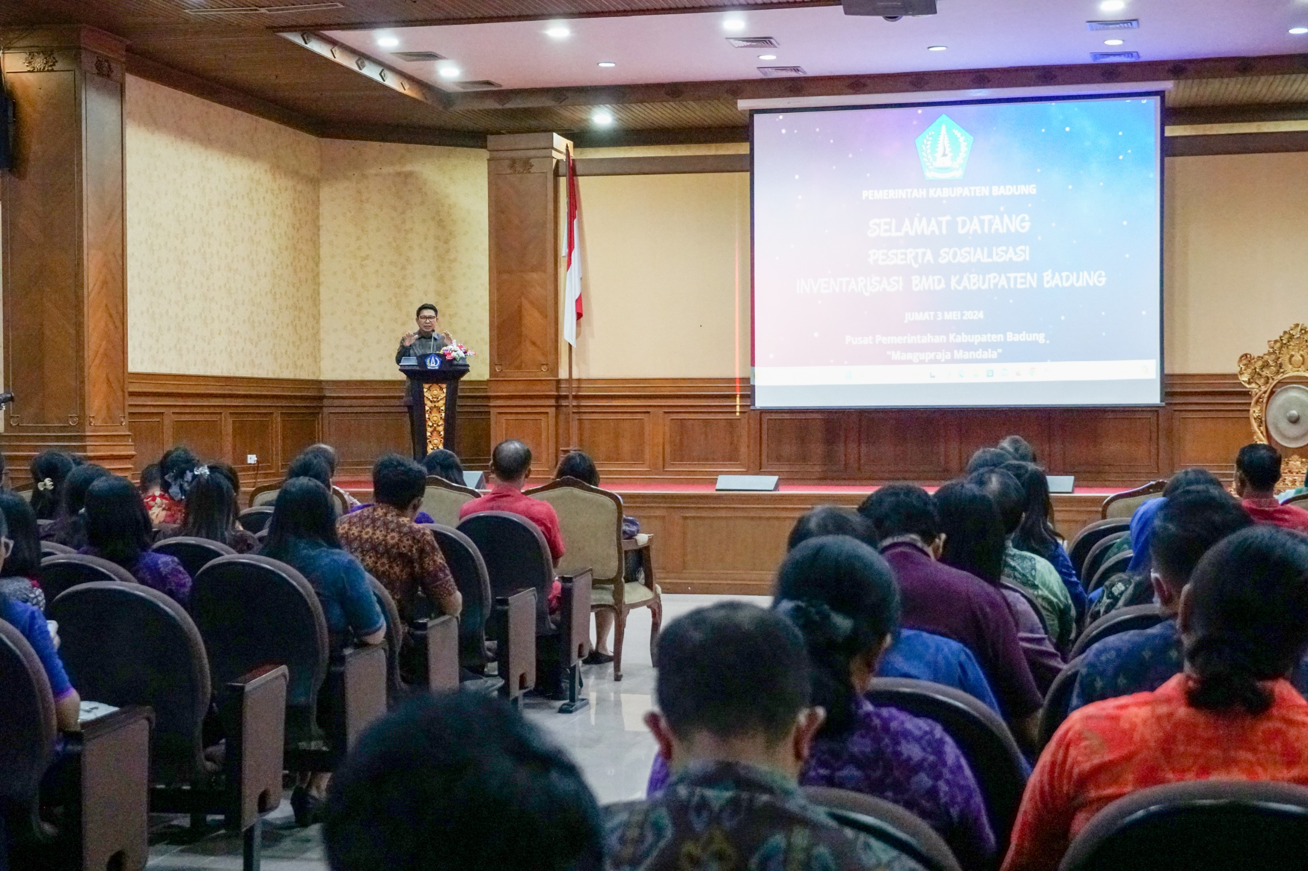 Sekda Adi Arnawa menyampaikan atas nama pemerintah sangat mengapresiasi terhadap kegiatan sosialisasi peningkatan manajemen pengelolaan Barang Milik Daerah (BMD) di Kabupaten Badung dan launching Sistem Informasi Usulan Standar Harga (SI USAHA).
