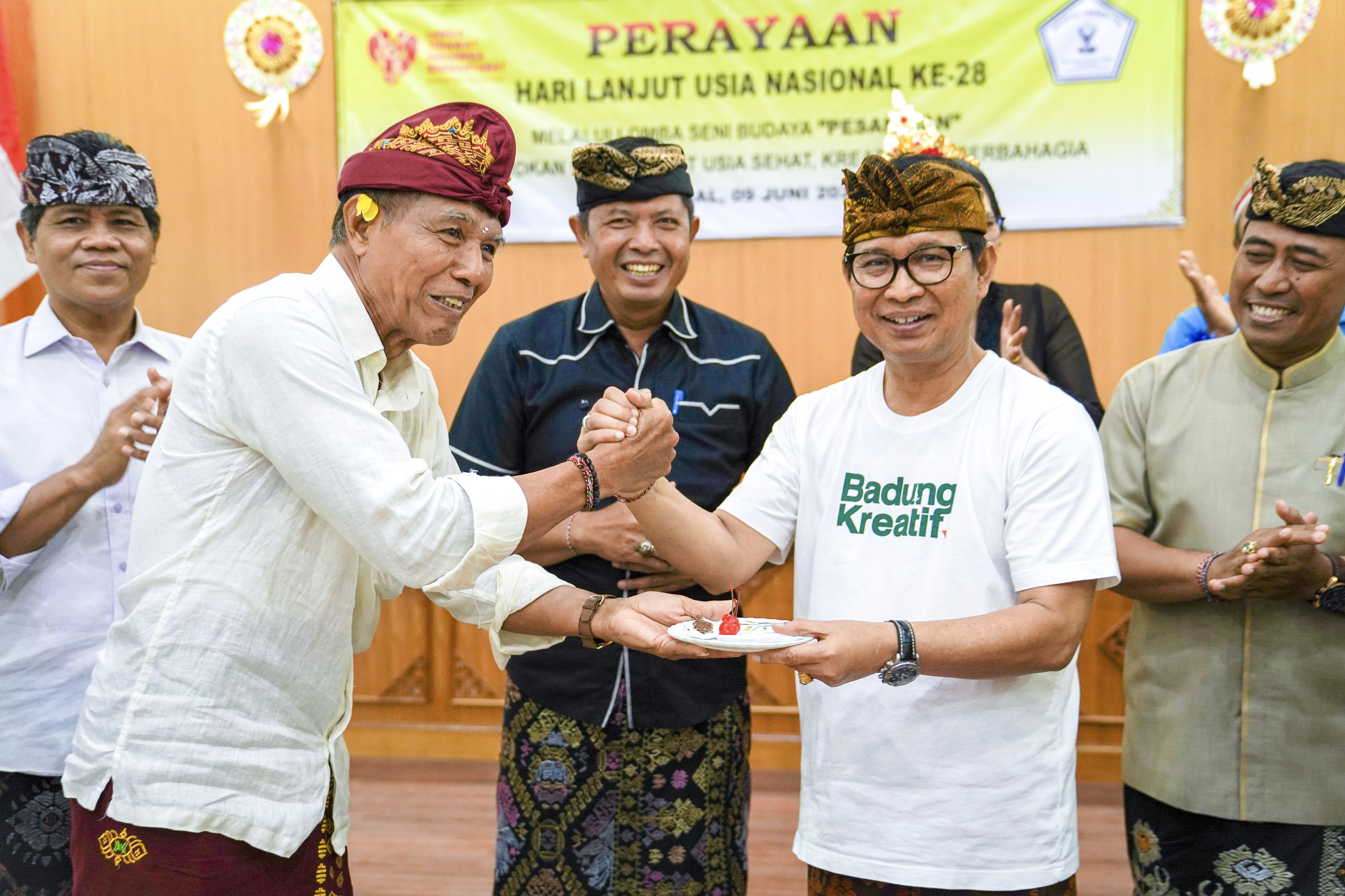 FAKTA – Mewakili Bupati Badung, Sekda Adi Arnawa membuka Lomba Seni Budaya Pesantian serangkaian Hari Lanjut Usia (Lansia) Nasional Ke-28 yang ditandai dengan pemukulan Gong. Lomba Seni Budaya Pesantian tersebut diselenggarakan oleh Werdha Priyamitra Kec. Kuta Utara dengan mengusung tema “Kita Wujudkan Para Lanjut Usia Sehat, Kreatif dan Berbahagia” bertempat di Gedung Pertemuan Lantai III Kantor Camat Kuta Utara Badung, Minggu (9/6/2024).