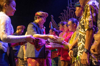 “Sudah saatnya kita berpikir dari segala aspek sehingga benar-benar apa yang menjadi impian, keinginan pemerintah Indonesia bisa terwujud, semua komponen manusia harus terlibat,” pesan Adi Arnawa seraya menyerahkan bingkisan kepada 10 orang mantan Perbekel Desa Jagapati. (hms)