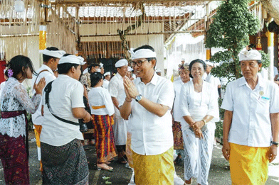 Sekda Adi Arnawa saat menghadiri karya Pediksan Ida Bagus Anom Sudira dengan Ida Ayu Made Darmiati bertempat di Griya Manik Jumpung Abiansemal.