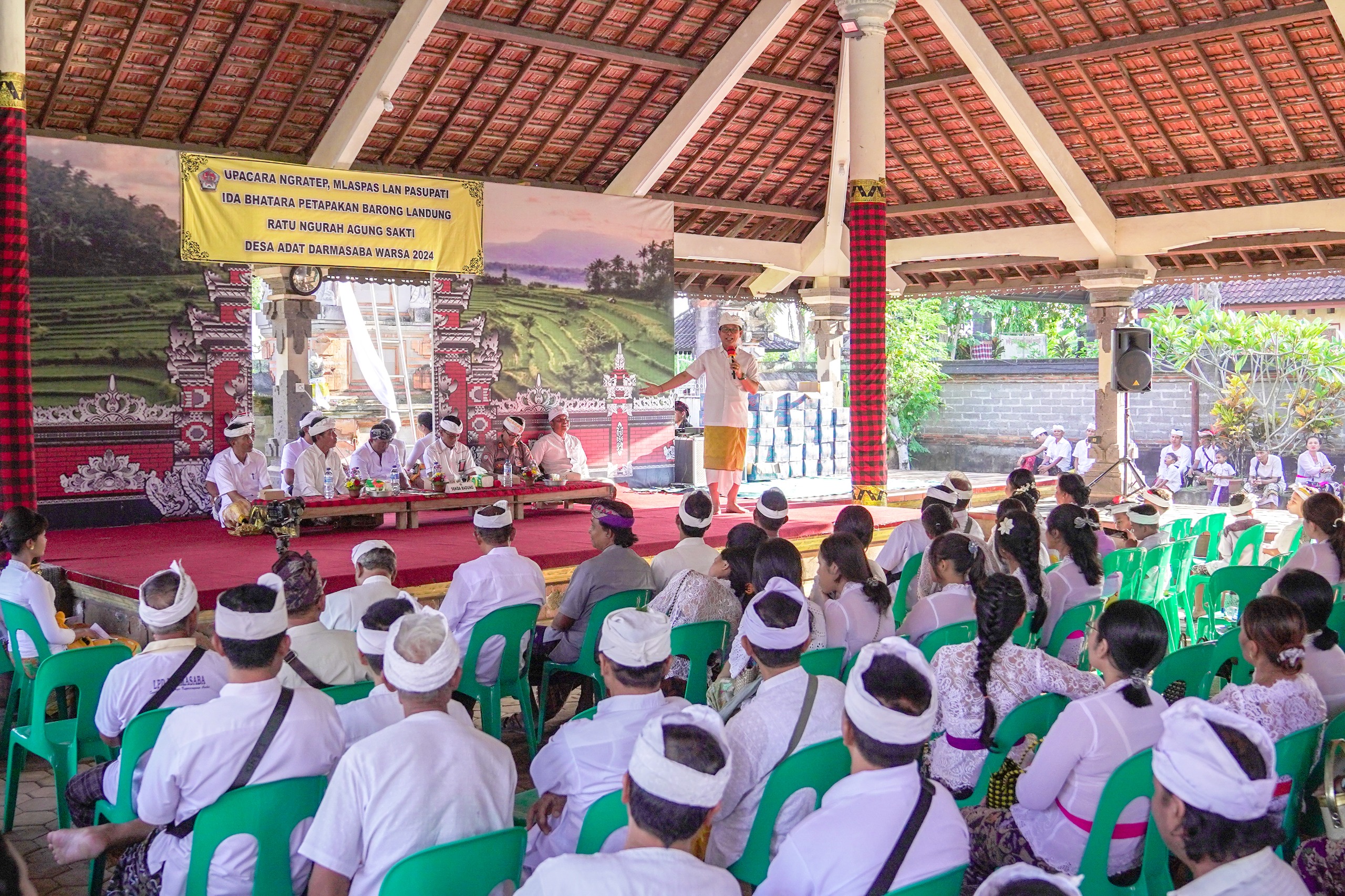 FAKTA – Atas nama Pemerintah Sekda Adi Arnawa mewakili Bupati Badung menyampaikan rasa syukur dan terima kasih kepada masyarakat Desa Adat Darmasaba telah menjaga dan melestarikan seni, adat dan budaya dengan dilaksanakannya Upacara Ngeratep, Melaspas dan Pasupati Ida Betara Petapakan Barong Landung Ratu Ngurah Agung Sakti di Pura Desa, Desa Adat Darmasaba, Jumat (29/3/2024).